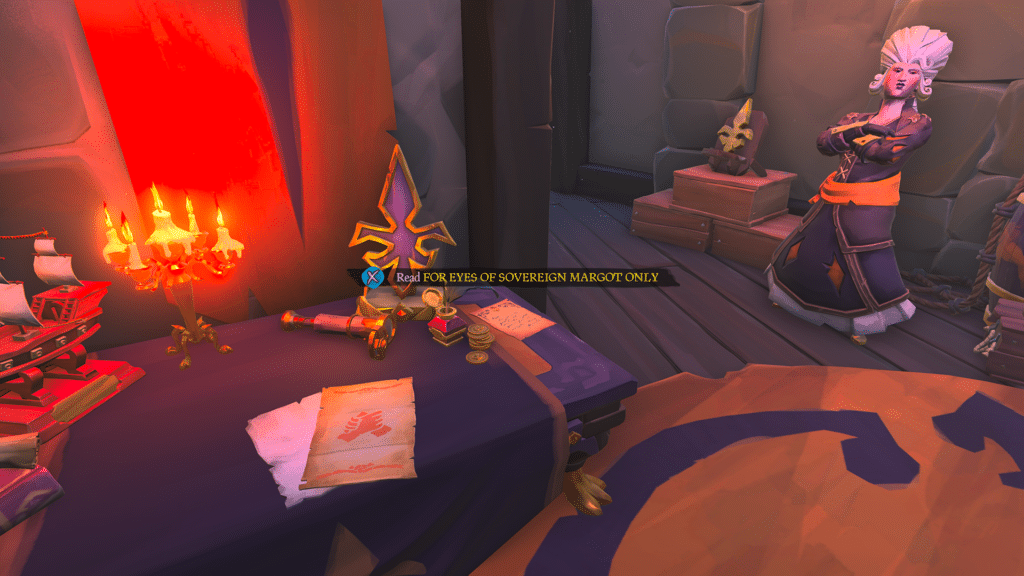 The Orb is referring to a note left at the Sovereigns on Port Merrick. You can find it on the Guild Emissary Table. The note is titled, “FOR EYES OF SOVEREIGN MARGOT ONLY.”
